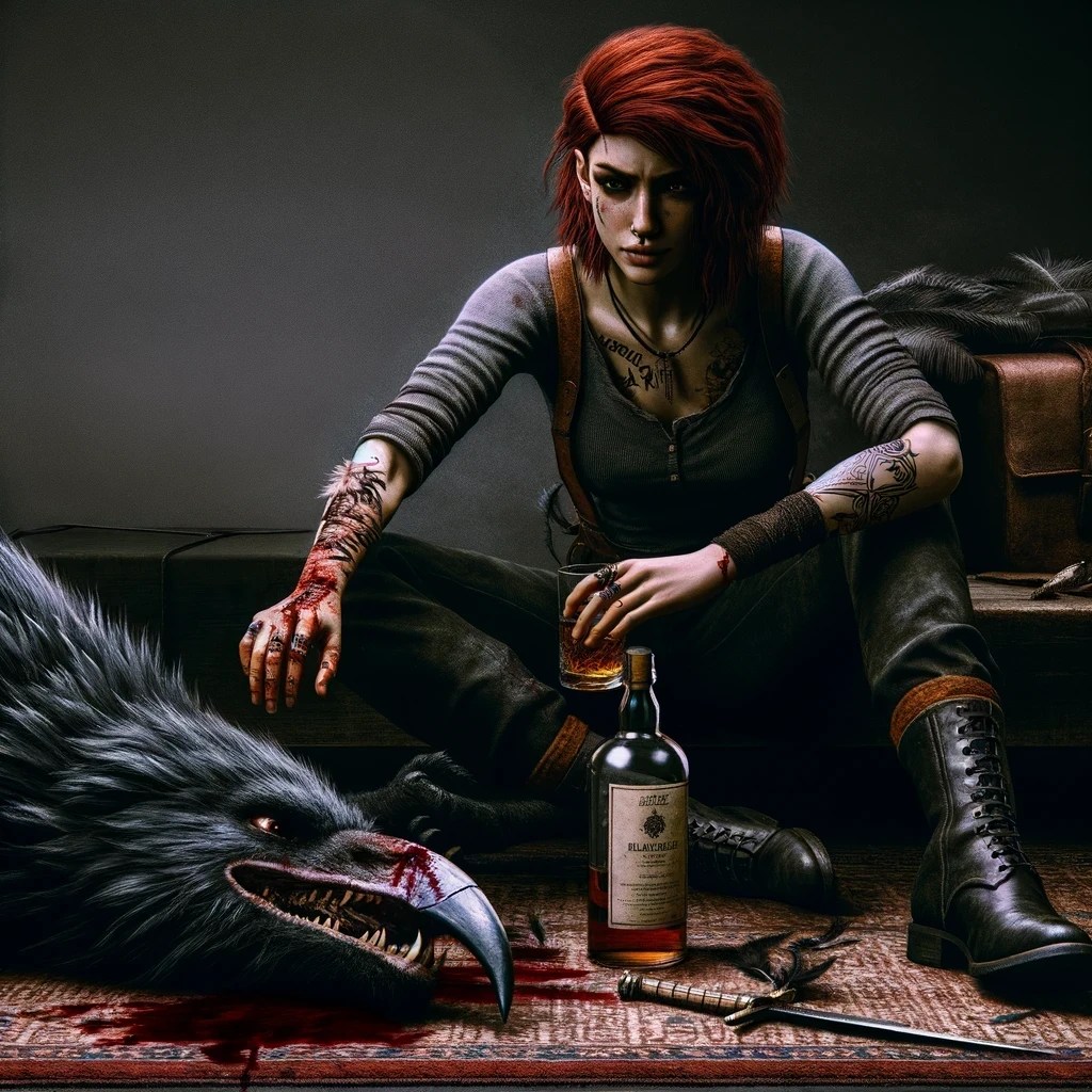 Sięgnąłem sprawną ręką po butelkę whisky leżącą na szafce obok, jak gdyby nic się tu przed chwilą nie stało. Płyn powędrował przez przełyk, dając rozgrzewające uczucie. Dziewczyna usiadła na ziemi obok po turecku i wyciągnęła rękę w kierunku flaszki.